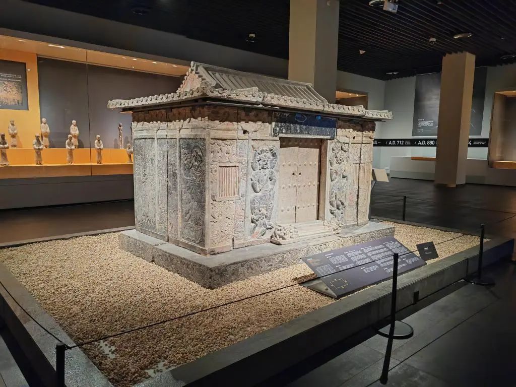 史君墓石椁是一件北周时期的文物,2003年出土于西安市未央区井上村的一座粟特贵族墓葬中,墓主史君是粟特商队的领袖——萨保。这件石椁上有粟特语和汉语铭文,以及交融多种文明元素的浮雕,对研讨丝绸之路上的文明、商贸沟通具有极端严重价值。